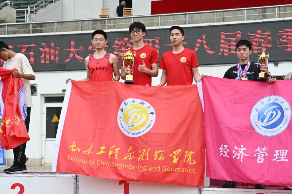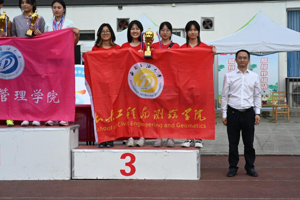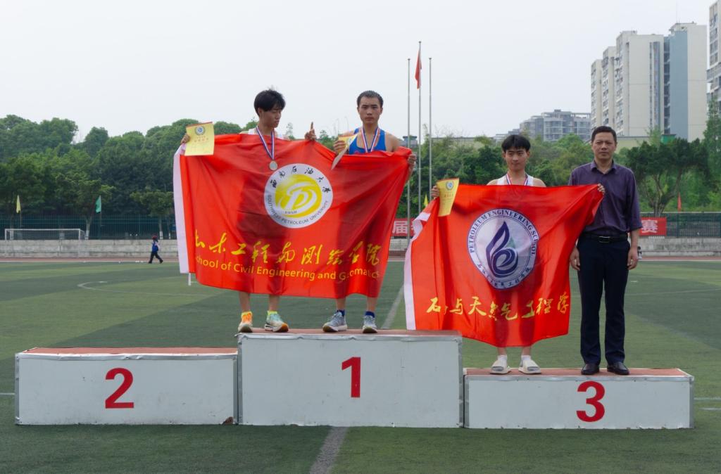 4月13日,嚴小春同學獲得了女子400米第三名,唐銳同學和郭文龍分別獲得男子5000米第一名和第二名。土測院獲得了4×400米女子組第二名,李常誠同學獲得了男子三級跳遠第一名。在運動員、工作人員和全體師生的共同努力下,土測院斬獲男子團體第一,女子團體第四的優異成績。