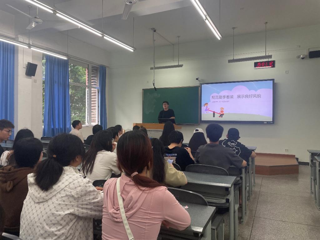 5月10日,開展了“規范夏季著裝,展示良好風貌”主題班會,“冠必正,紐必結;襪與履,俱緊切。”作為當代大學生我們要穿干凈得體的衣服,衣著要以大方、方便、舒適為主。