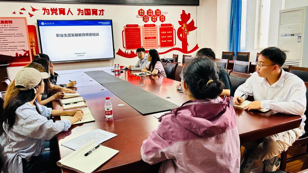 為進一步加強學院就業指導工作專業化建設,提升《大學生職業發展與就業指導》課程教學水平,5月29日,我院邀請學校招生就業處張亦弛老師開展生涯發展培訓,我院黨委副書記何雨洋、全體專兼職輔導員參加本次培訓。