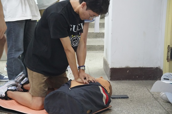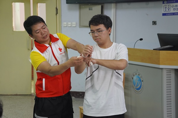 培訓(xùn)活動(dòng)分為理論講解和實(shí)際操作兩部分。紅十字培訓(xùn)員通過(guò)圖片、數(shù)據(jù)、實(shí)際案例等資料,向同學(xué)們介紹了紅十字運(yùn)動(dòng)的基本知識(shí)和應(yīng)急救護(hù)的重要性,幫助同學(xué)們掌握基本的理論知識(shí)。在講解心肺復(fù)蘇術(shù)和氣道異物梗阻處理時(shí),培訓(xùn)員詳細(xì)闡述了操作步驟和注意事項(xiàng),并利用模擬人體道具,著重針對(duì)心肺按壓、人工呼吸等應(yīng)急救護(hù)方法進(jìn)行現(xiàn)場(chǎng)示范,同時(shí)引導(dǎo)同學(xué)們進(jìn)行實(shí)操,對(duì)不規(guī)范動(dòng)作及時(shí)指正,確保每位同學(xué)都能夠掌握正確的急救方法。