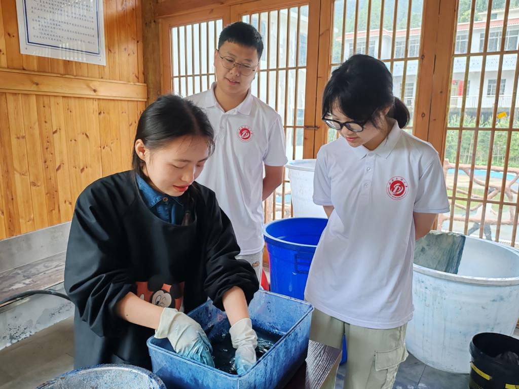 實踐隊隊員與苗族同胞交流蠟染技藝