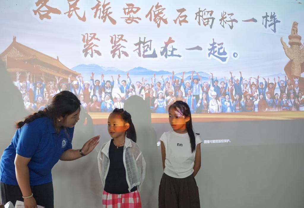 在白沙村村委會,實踐隊針對當地兒童開展了專門的普通話教學活動,利用PPT講解、小游戲進行互動的形式,引導孩子們用普通話表達自己的想法,增強他們的語言交流能力,同時通過講述與自己不同民族的朋友之間的友誼來展現民族團結。在宣講會上,實踐隊著重強調,各民族像石榴籽一樣,緊緊擁抱在一起,既點明中心思想,又突出會理特產石榴,增強文化自豪感與歸屬感。這一舉措不僅得到了孩子們的熱烈歡迎,也贏得了家長們的高度評價。