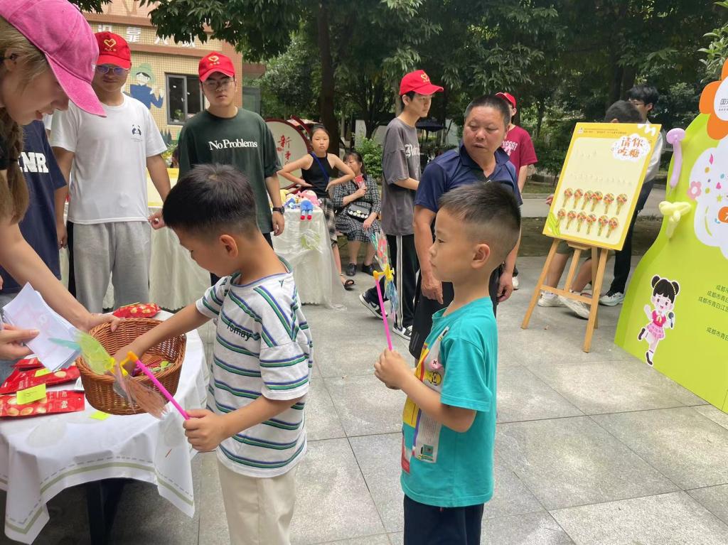 7月14日“一心為你”志愿服務隊前往青白江區蜀韻南庭9棟參加“萌童集市”七月關愛兒童主題活動現場協助志愿服務?!耙恍臑槟恪敝驹阜贞犼爢T在活動現場與活動負責人積極溝通,認真籌備端午節活動所需的場地與物資。工作人員表示:“志愿服務隊的隊員們態度十分端正,對待志愿工作十分認真,展現了當代大學生良好的面貌與素養”