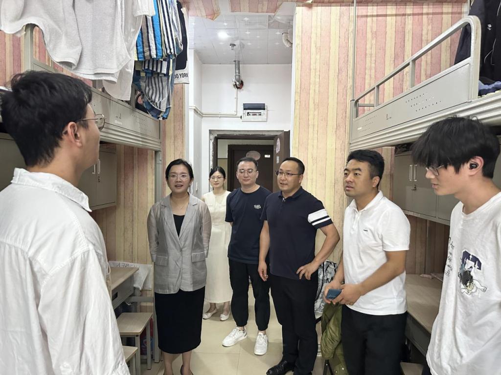 在走訪過程中,與同學們進行了親切交流,了解學生線上上課適應情況和目前困難,并送上慰問飲品。何雨洋在走訪大四學生寢室中,重點了解了學生就業想法和大四安排,鼓勵同學們樹立正確就業觀念,抓住校招,積極投身就業。叮囑同學們做好防暑措施,注意用電防火安全。潘海澤表示,學院始終心系學生成長,要求老師精心安排好線上課程,主動了解學生困難,努力為同學們創造一個更加舒適、和諧的學習和生活環境。
