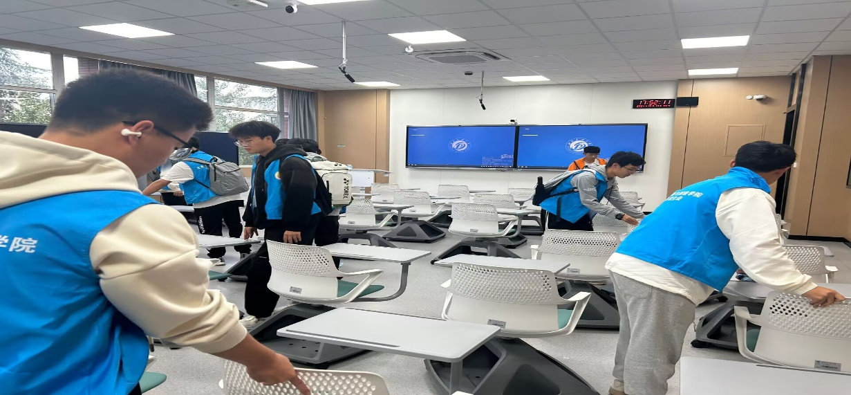 下午五點四十,志愿者們和負責人就已經在明志樓下集合,做好準備工作,并在負責人的安排下進行了簽到,確保志愿者們都安全到達明志樓。在簽到完畢之后,活動主要負責人向大家講解了工作內容并分配好每個樓層的志愿者人數,分別由不同的負責人帶隊去完成這次明志樓清掃活動。本次清掃活動主要任務是清掃各樓層的教室,并將桌椅板凳擺放整齊,給大家留下一個干凈整潔的教室;將明志樓下的車輛整齊的擺放在停車區。在清掃的過程中,大家都穿著鮮艷的志愿者馬甲,在不打擾同學們自習的情況下,安靜有序的清掃教室地面以及抽屜里的垃圾,志愿者們會戴上手套將垃圾撿起,扔進自備的垃圾袋里;如果教室自習人數太多,為了不打擾同學們努力學習,保證一個安靜的氛圍,我們會先清掃別的教室,再安排其他時間進行打掃;每個樓層的志愿者們都十分積極,高效的開展著志愿者工作,很快,各個樓層的負責人互相通知了消息,各樓層清掃完畢。在大家的共同努力下,明志樓變得更加干凈衛生,相信會給同學們提供一個更好的學習環境,營造一種良好的氛圍。還有一部分志愿者在樓下擺放車輛,將停放位置不恰當的自行車、停放不規范的自行車、翻倒的自行車全都擺放整齊,再齊心協力一起將重量大的電瓶車擺放整齊。在同學們的共同努力下,校內的代步工具被整理得井井有條。在活動結束后,項目組成員整理好活動工具和馬甲,將其歸還到了原處。