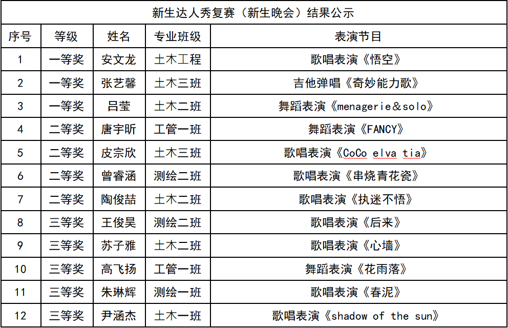 土測院新生達人秀復賽(新生晚會)比賽結(jié)果公示