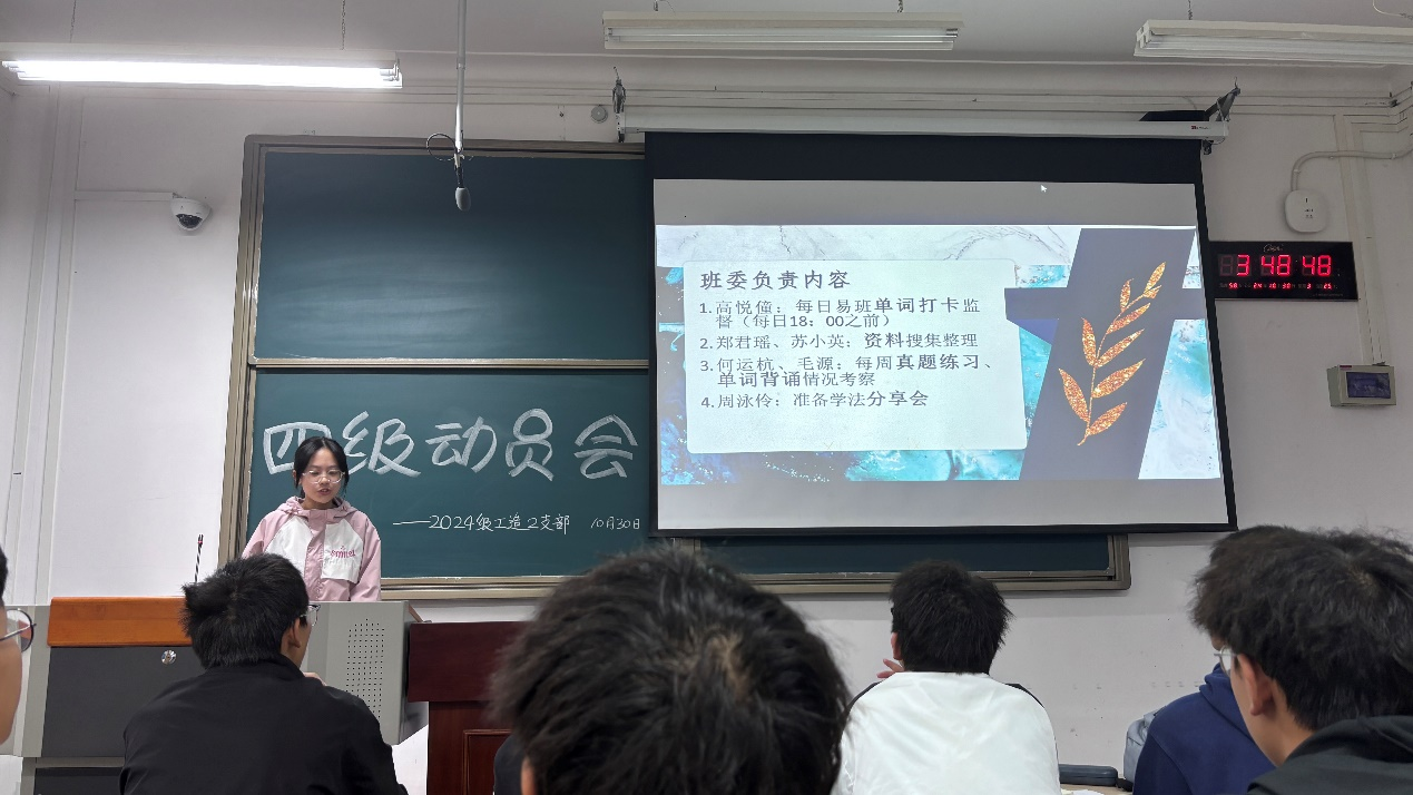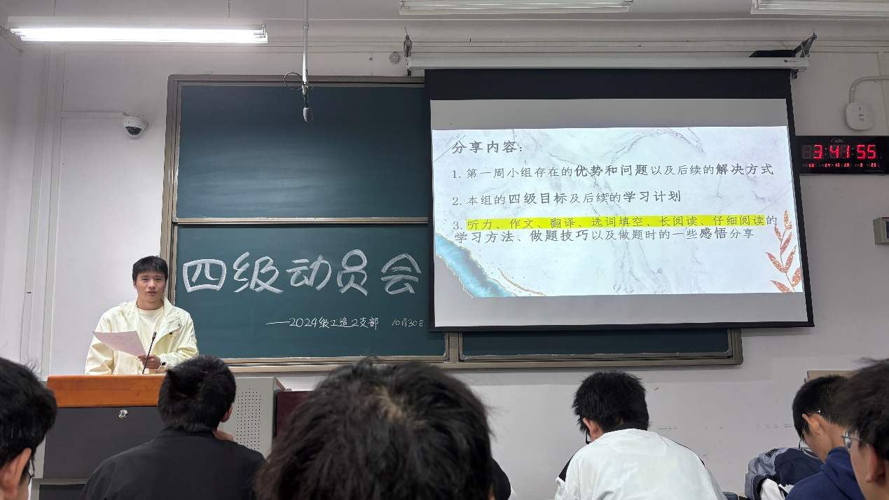 在活動中,支部成員們以小組為單位,共同制定個性化的學習計劃,合理安排每天的學習任務,互相督促、互相鼓勵。在這一個月里,豐富多彩的活動貫穿始終。定期舉辦英語學習講座,邀請優秀學長學姐分享學習方法和考試技巧為同學們答疑解惑。同時,利用晚自習的時間進行模擬考試,讓支部同學提前熟悉考試流程和題型,及時發現自己的不足之處并加以改進。