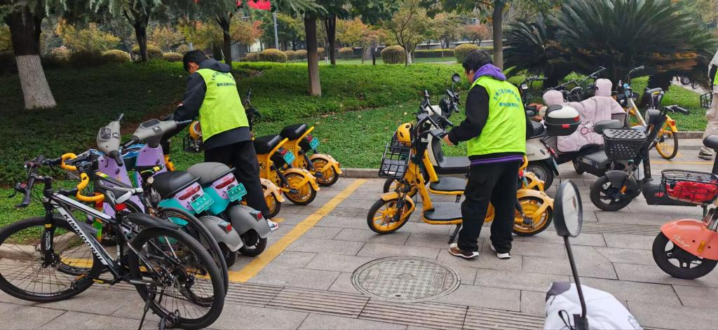 志愿者在將車輛擺放整齊
