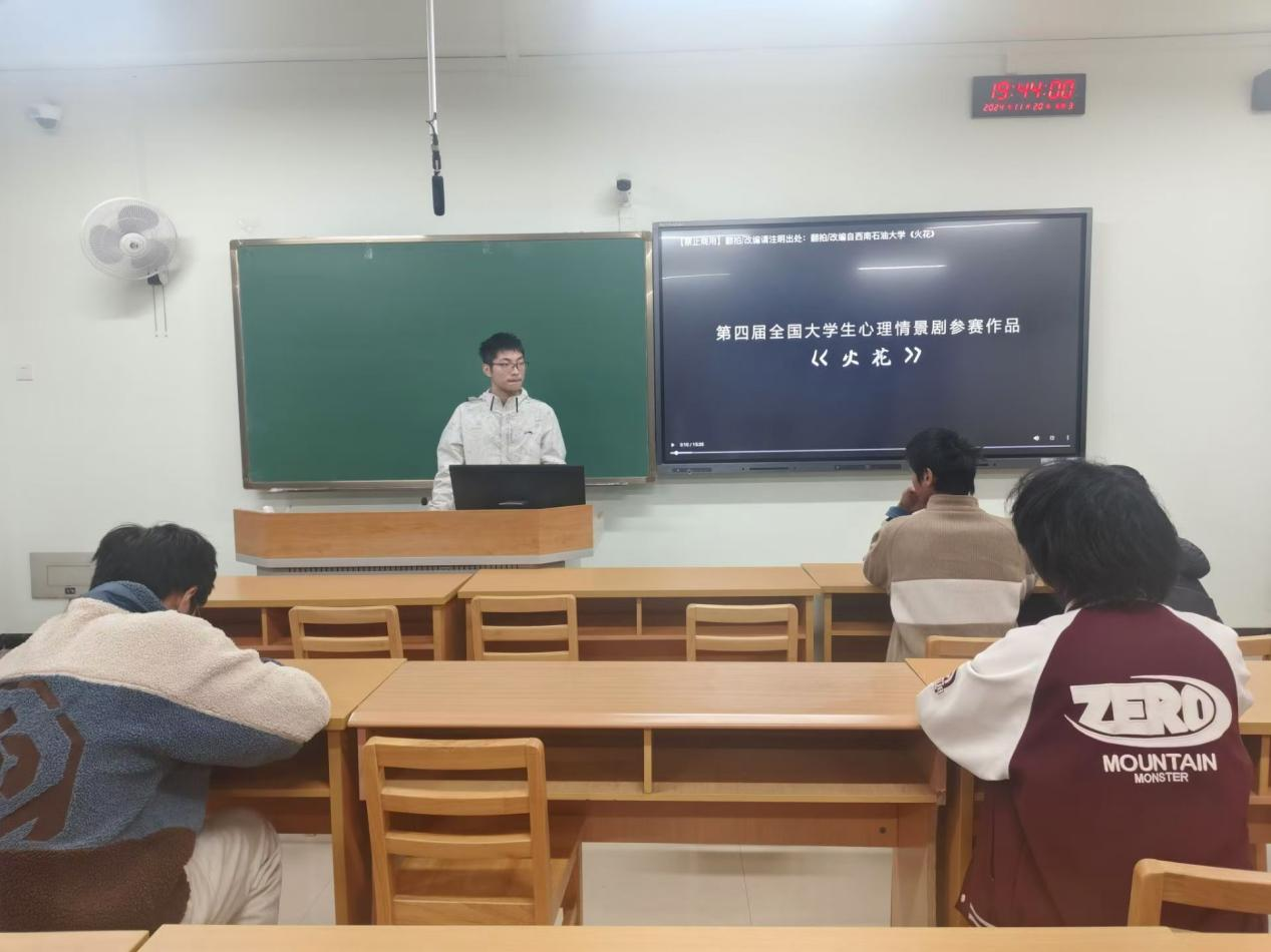 為了更好的全釋和感受心理情景劇的魅力,本次培訓(xùn)大家共同觀看往屆心理情景劇大賽優(yōu)秀作品《火花》,生動(dòng)再現(xiàn)了“火花”這一形象背后蘊(yùn)含的寶貴精神,同時(shí)生動(dòng)的語言告知眾人應(yīng)如何制作心理情景劇,如何做好心理情景劇。此外,培訓(xùn)中副站長米家樂提到:“要想拍攝好心理情景劇,讓觀眾身臨其境,這需要我們從生活中取材,寫出最好的劇本,拿出最好的演技,切勿特立獨(dú)行。”