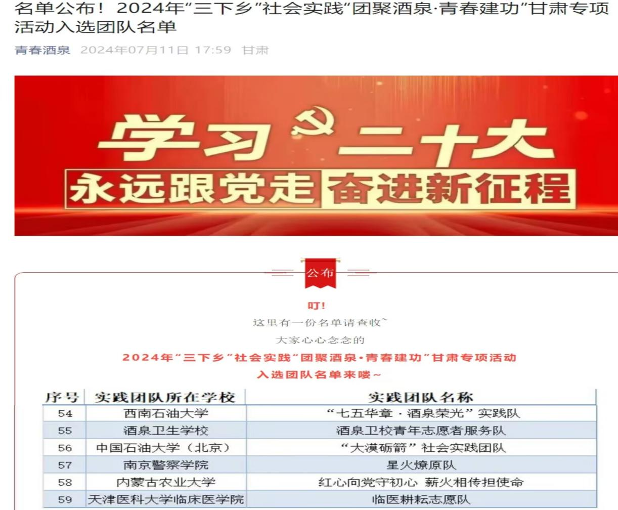 2024年7月11日,西南石油大學土木工程與測繪學院建筑藝術協會組建的“七五華章·酒泉榮光”實踐隊,成功入選2024年“三下鄉”社會實踐“團聚酒泉·青春建功”甘肅專項活動。該實踐隊由十名杰出學生構成,他們將深入甘肅省酒泉市,開展以探索酒泉科技文化與新中國成立以來的成就發展為主題的實踐活動。酒泉市不僅歷史文化底蘊深厚,更是新中國成立以來在航空航天、新能源等領域取得顯著成就的重要地區,同時,其在基礎設施建設、教育文化等方面也取得了長足進步,實踐隊將重點調研這些領域的成就。