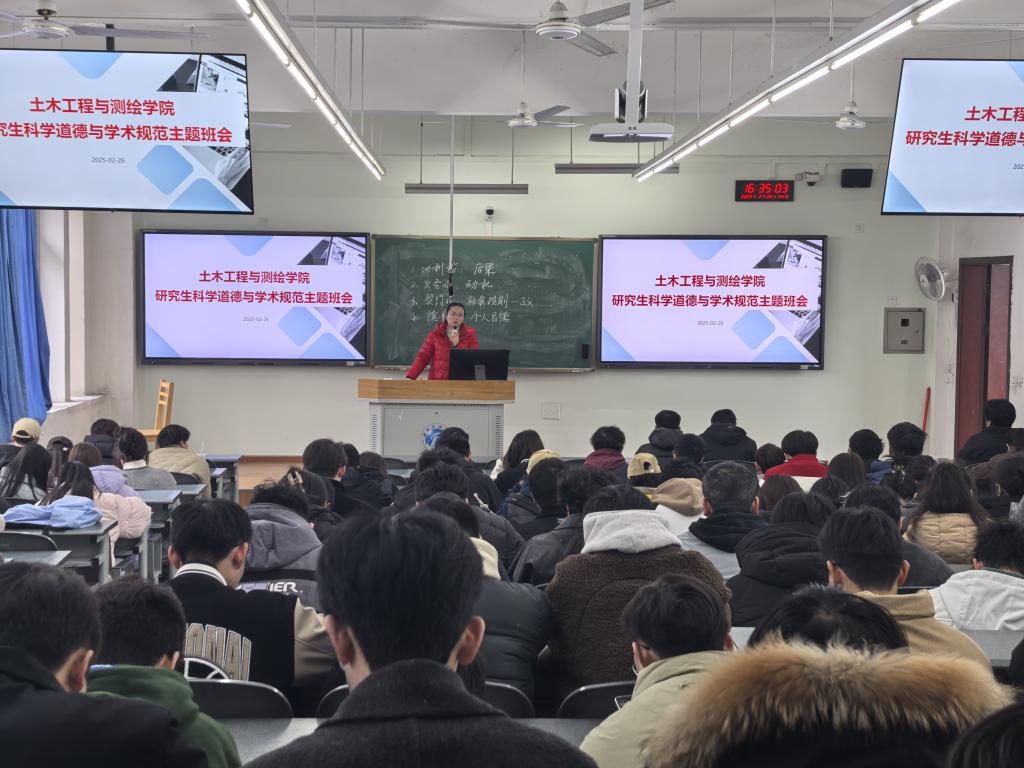 為提升研究生對科研誠信的認知,強調學術道德與學術規范的重要性,土木工程與測繪學院于2月26日16:30在明志樓A301成功舉辦了主題為“科學道德與學術規范”的專題講座。本次講座由研究生輔導員況晏主講,全體研究生參加。