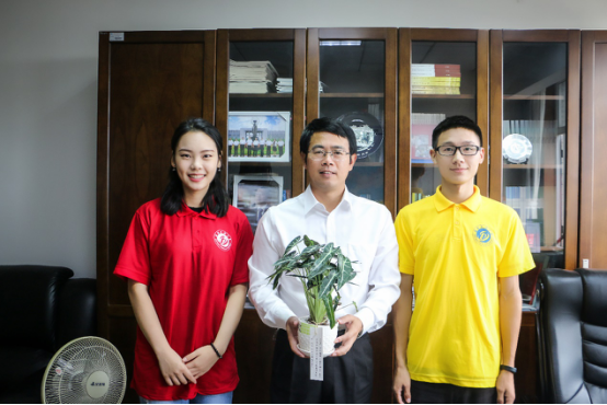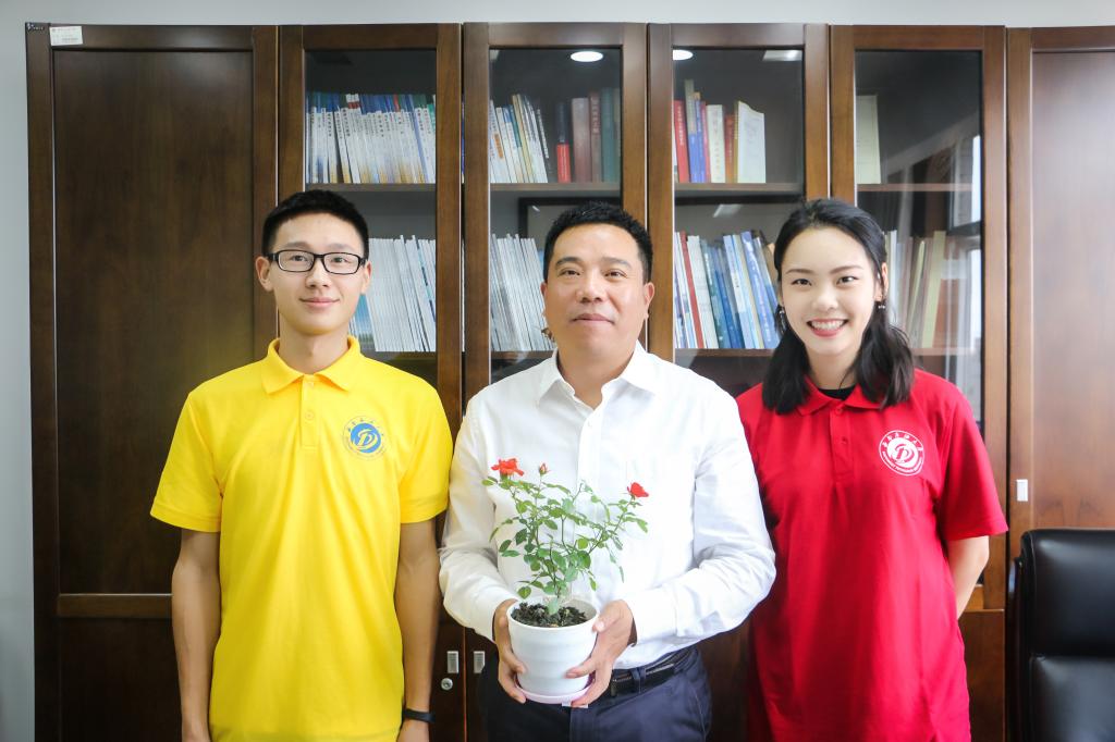學生會和學生社團聯合會代表全體青年學生滿懷真誠與喜悅走進校領導的辦公室,用溫馨的卡片、自己培育的綠植,和一聲飽含真情的“老師,您辛苦了”表達青年學生對老師最誠摯的祝福。學生會見習主席團張心怡祝福黨委書記孫一平老師芬芳滿園、桃李天下。社團聯見習主席范道全向校長趙金洲老師說道:這些綠植都是我們社團的同學們自己培育的,他們精心呵護,就像老師平日對我們的栽培,今天,我們也將自己的成果送給趙校長。趙校長親切的問候了同學們的姓名,學院,并寄語他們“在奮斗中成長”;黨委副書記趙正文老師對同學們表示感謝,同時祝福學生會和社團聯發展得越來越好。