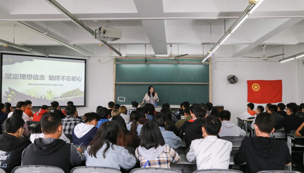 隨后,校團委蒲彥羽老師,溫登峰老師分別對學生會,社團聯合會等學生組織召開了學生干部大會。蒲老師就近日四川高校頻出的學生干部官僚化事件,引出會議的中心內容,接著分別從問題頻出的原因、學生干部自身定位及解決措施等三方面的內容著重講述了學生干部應具備的基本素養以及作風問題。溫老師就學生干部“立志做大事,不要做大官”和同學們展開了討論,溫老師提到,學生干部應該正確認識組織定位和個人定位。學生干部的首要身份是學生,要堅持“全心全意為同學服務”的初心,提高思想道德修養,當好學校和師生的橋梁,服務學生成長成才。與會學生干部紛紛表示,作為學生干部應牢固樹立服務意識,提升服務能力,以高標準嚴要求來約束自己,立足于提升自我,不斷提高自身政治修養,做同學們的榜樣。