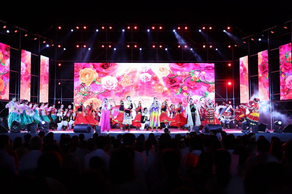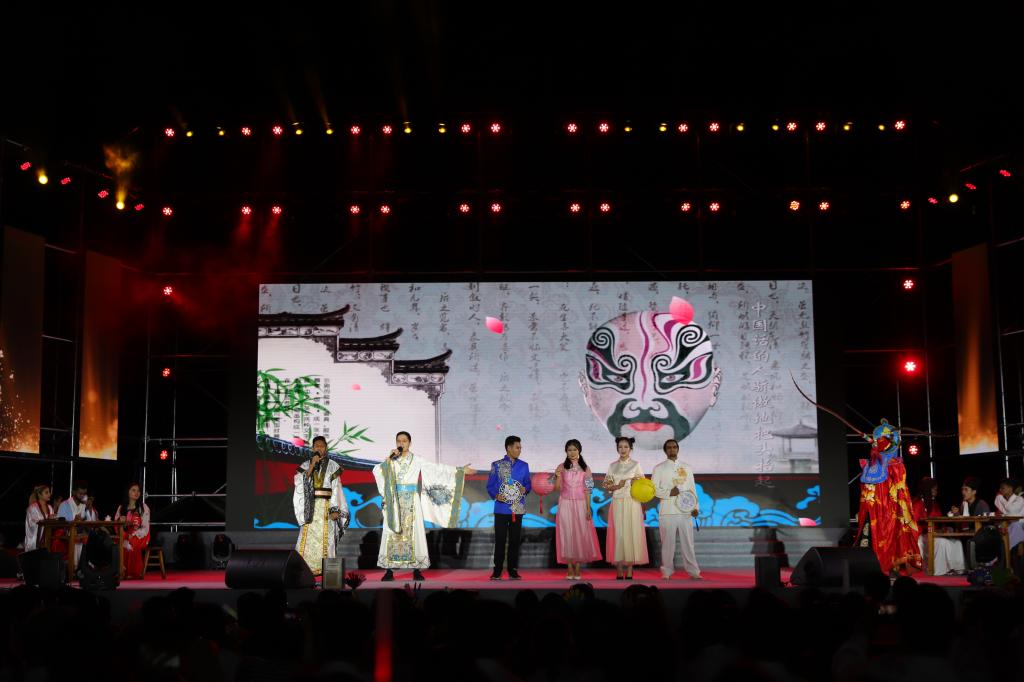 留學生帶來歌曲情景串燒《中國話》,以練習書法、編織中國結、演唱古風歌曲為情景,繪制出一幅中華瑰寶圖。器樂合奏《霜雪青花瓷》將古典音樂與流行音樂相結合,通過弘揚中華美育精神,讓人穿越時空,感受中華優秀傳統文化的魅力。