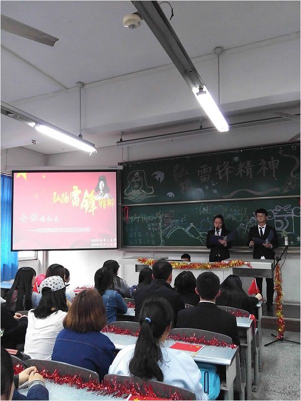 團支書的精心策劃與同學們的悉心付出使得活動會場生動豐富,活動形式花樣百出。其中,演說介紹《我說雷鋒》將雷鋒同志的一生經歷娓娓道來,使得在場同學更加了解了這位平凡的英雄,在感動的同時更加深刻的體會到了雷鋒精神的內涵;而男女朗誦《懷念雷鋒》則將會場氣氛推向了高潮,伴隨著小提琴優(yōu)美動容的琴音,朗誦者在情深意切的朗誦中表達了對雷鋒同志的歌頌,對雷鋒精神的贊揚;接著,同學一同觀看了視頻《感動中國》系列片段,看到了一位位當代雷鋒,將雷鋒精神傳遞發(fā)揚至今;活動的最后,同學們更是舉行了募捐儀式和宣誓儀式,用實際行動踐行了雷鋒精神,將志愿與奉獻從自身做起。
