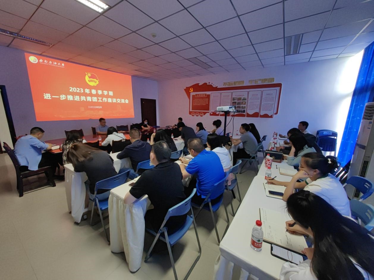 為進一步推動學習貫徹習近平新時代中國特色社會主義思想主題教育走深走實,按照《西南石油大學團委關于開展學習貫徹習近平新時代中國特色社會主義思想主題教育的工作方案》的相關要求,為切實健全黨員領導干部直接聯系服務師生制度,對青年學生普遍關切的問題及時開題作答、解疑釋惑、回應述求,推動訴求在一線回應、問題在一線發現、矛盾在一線化解,引導激勵我校共青團干部在服務師生、推動發展上發揮先鋒模范作用。5月23日下午,2023年春季學期進一步推進共青團工作座談交流會在學生活動中心522會議室召開。校團委副書記張維,各學院團委書記、副書記,校團委全體工作人員參加座談會,座談會由校團委副書記張維主持。