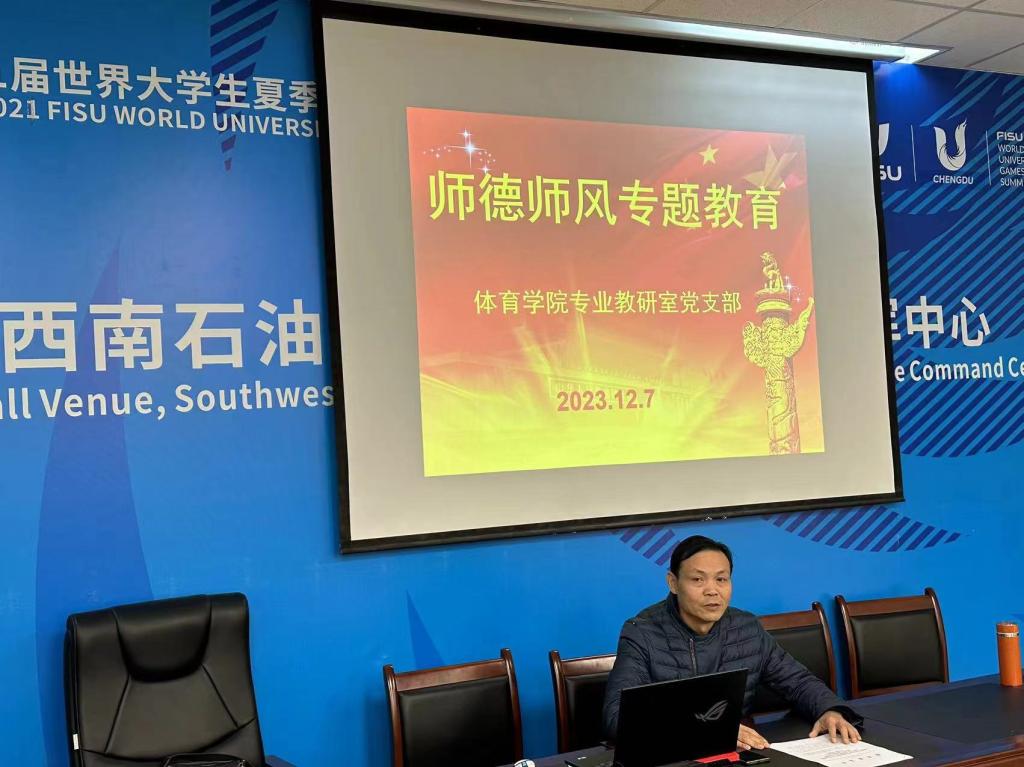 為深入學(xué)習(xí)習(xí)近平總書記在全國(guó)優(yōu)秀教師代表座談會(huì)的重要講話精神,12月7日下午,體育專業(yè)黨支部在體育館會(huì)議室開(kāi)展“師德師風(fēng)專題教育”。本次學(xué)習(xí)由支部書記陳天洪同志主持,支部成員參加此次學(xué)習(xí)。