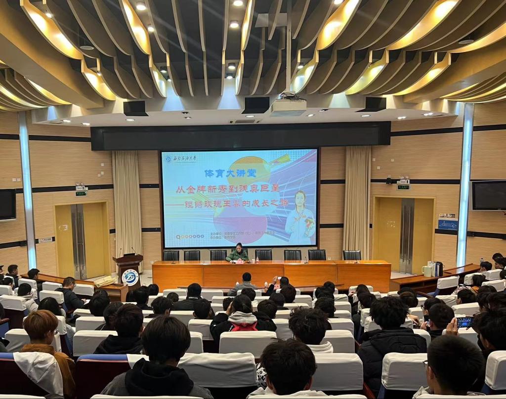 12月1日下午,由黨委學生工作部(處)、體育工作委員會主辦,體育學院承辦的“體育大課堂:從金牌新秀到殘奧巨星——鏗鏘玫瑰王睿的成長之路”在思學樓A114舉辦,本次講座有幸邀請到中國殘疾人乒乓球隊隊員、杭州亞殘運會冠軍、王睿分享冠軍成長歷程。學校300余名師生認真聆聽了講座,體育學院副院長向劍鋒主持活動。