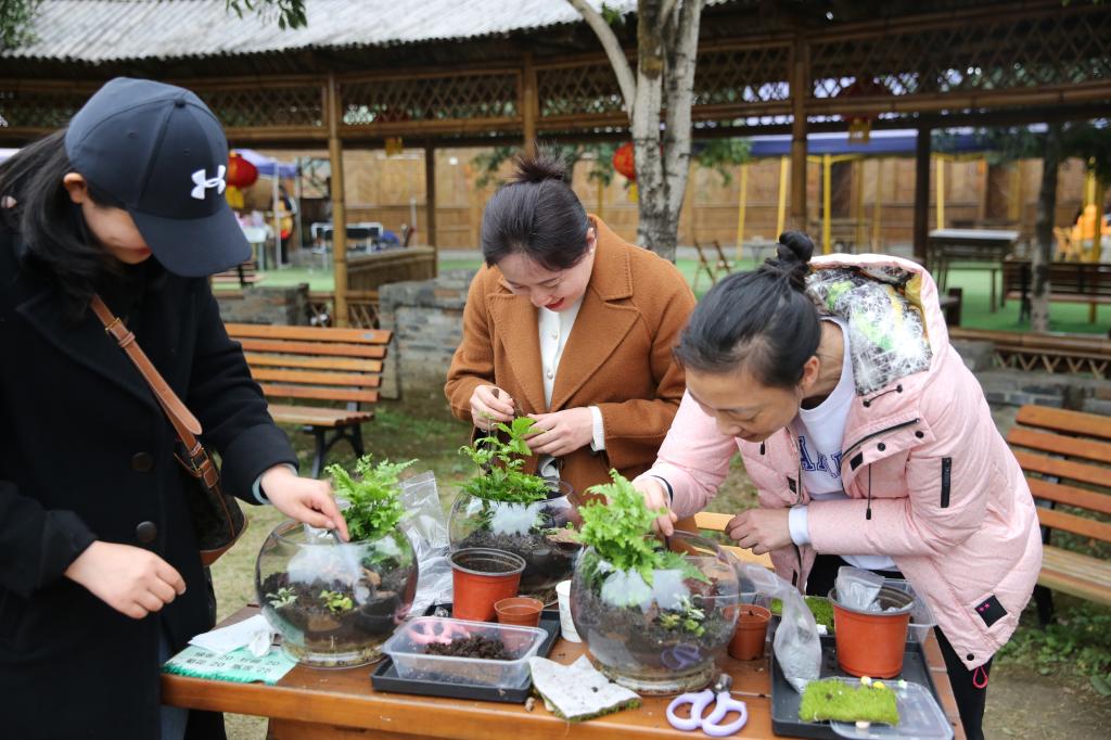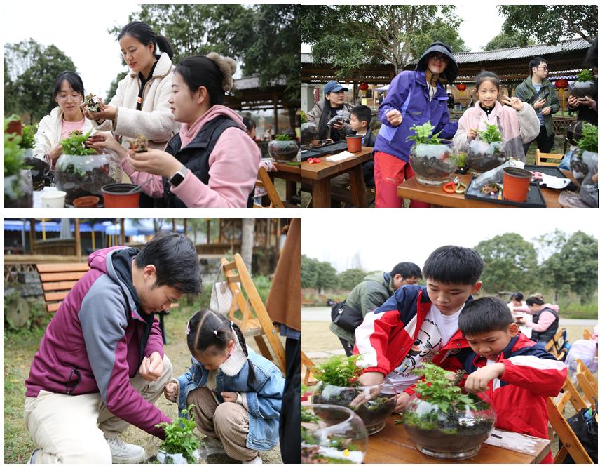 下午,大家一起體驗了微景觀 DIY制作活動。將苔蘚等綠植,加上各種砂石、可愛的卡通動物裝進一個瓶子里,構成妙趣橫生的場景,大家跟隨老師的指導教學,一步步認真制作屬于自己的創意生態瓶。歷時一小時,隨著指尖“綠”動,微景觀制作成功,大家都一起把“大自然”帶回家!
