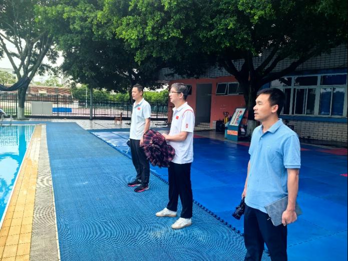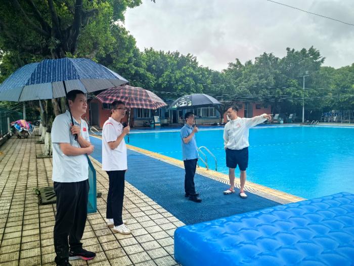 在游泳池,學院黨委書記彭小華仔細了解開放期間的值班安排,強調要配備足夠的救生員和工作人員,加強救生員和工作人員的安全培訓工作,確保游泳池不發生安全事故。