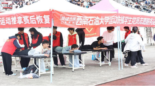 體育學院運動先鋒學生黨員為運動員提供推拿志愿服務