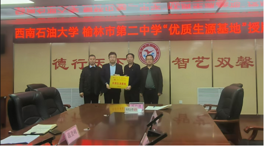 為進一步加強學校招生宣傳工作,加大招生宣傳力度,吸引更多優質生源報考我校。12月以來,受學校招就處委托,體育學院黨委副書記、紀委書記溫登峰,副院長劉小平,謝成超教授一行3人赴四川省綿陽市、陜西省榆林市,與綿陽市普明中學、綿陽市梓潼中學、陜西省榆林市實驗中學、榆林市第二中學舉行了優質生源基地簽約授牌儀式,并對學校進行宣傳推介。為廣大學生在心中埋下了一顆“石油報國”的種子。