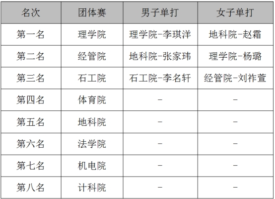 本次比賽不僅展示了我校學生在乒乓球項目上的卓越技能,也促進了各學院之間的體育交流與合作,進一步推動了校園體育文化的發展,通過這樣的體育賽事,學生們不僅身體素質得到了鍛煉,也增強了團隊協作精神和競爭意識,為校園生活增添了更多色彩。
