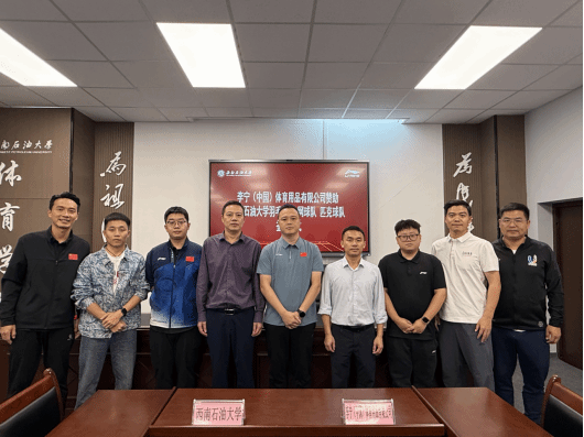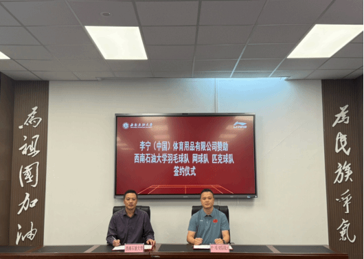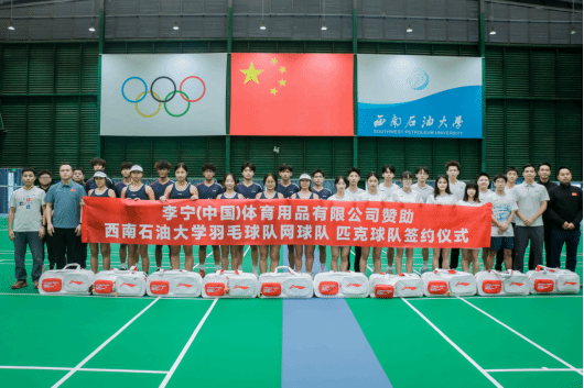 10月14日下午,李寧(中國)體育用品有限公司贊助西南石油大學羽毛球隊、網球隊、匹克球隊簽約儀式在體育學院舉行。李寧羽網匹事業部西南區大區經理李明一行4人,體育學院相關負責人出席。