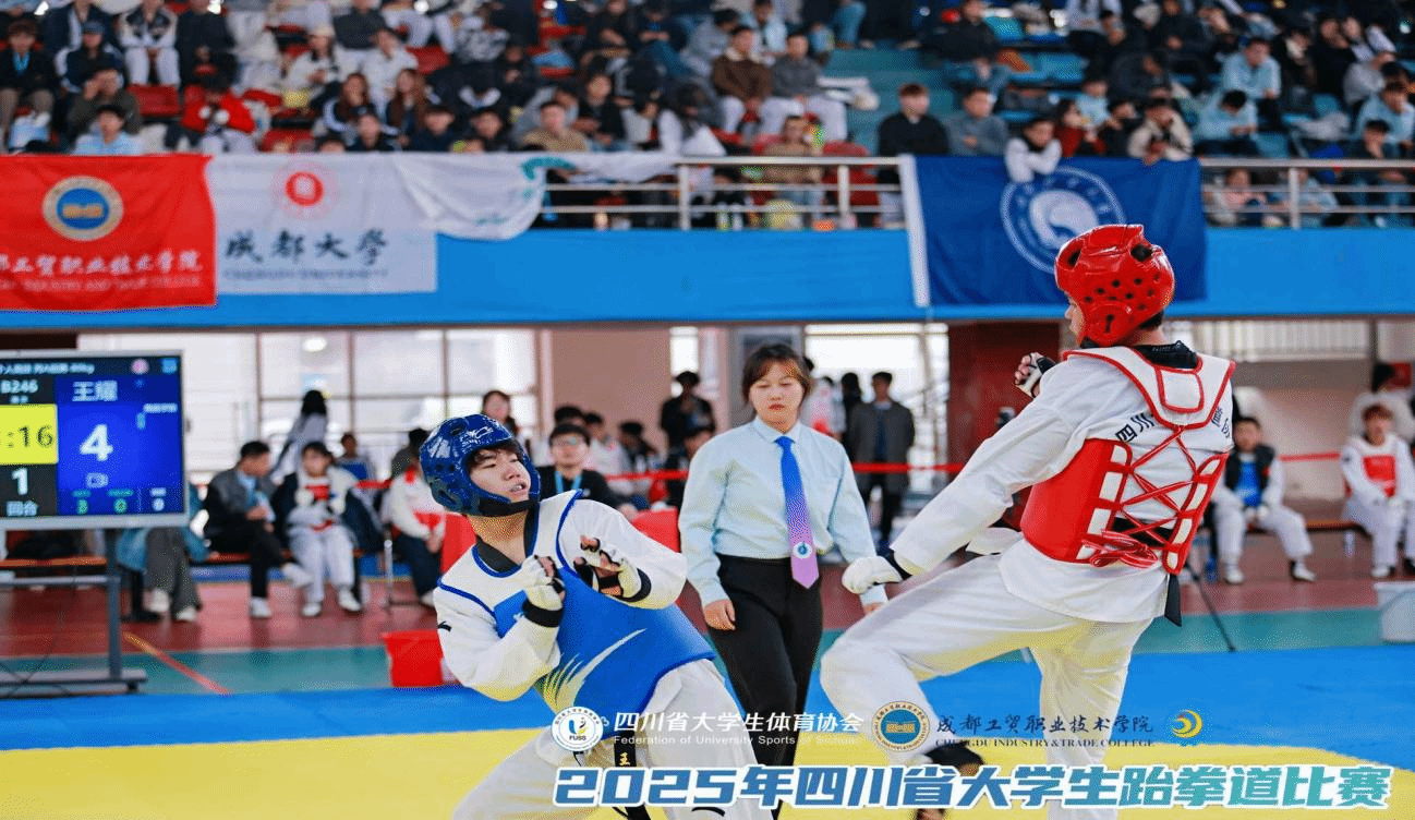 2025年10月31日至11月2日,四川省大學(xué)生跆拳道比賽在成都工貿(mào)職業(yè)技術(shù)學(xué)院舉行。經(jīng)過激烈角逐,我校跆拳道代表隊發(fā)揮出色,共奪得勇奪3枚金牌和1枚銀牌,展現(xiàn)出強(qiáng)勁的競技實力與昂揚(yáng)的精神風(fēng)貌。