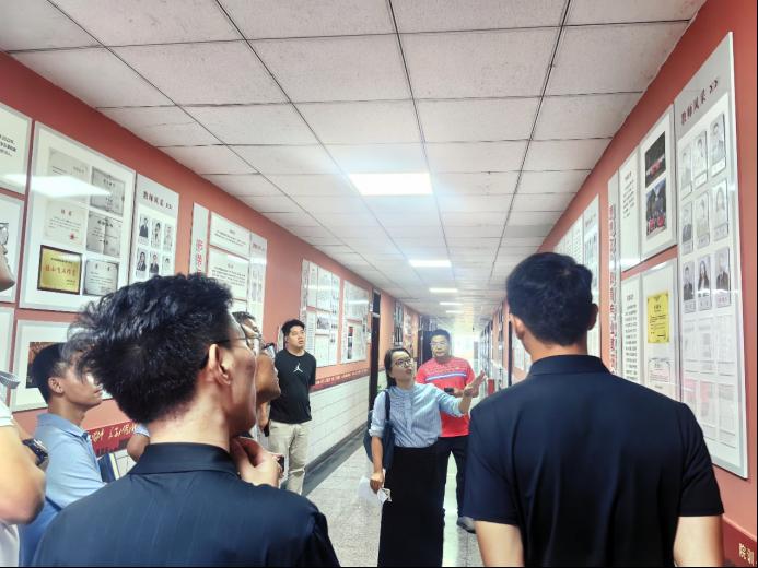 在馬克思主義學院,黨委書記孫德剛親自擔任講解員,引導參觀團隊欣賞了以故宮紅為底色的學院文化墻。這面墻面如同展開的書卷,詳細展示了馬克思主義中國化的發展歷程、中國共產黨成立歷史、石油精神以及學院的辦學特點等。通過圖文并茂的展示,大家深刻感受到了馬克思主義理論的博大精深和中國共產黨艱苦卓絕的奮斗歷程。隨后,副院長張莉帶領大家領略了教師風采,詳細介紹了學院各教研室基本情況、建設成效和一課一特色等內容。