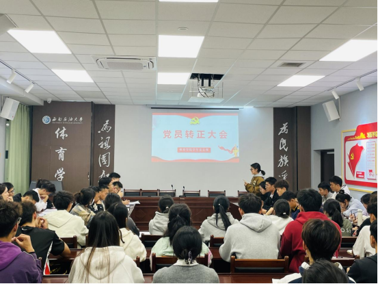 為進一步加強黨員隊伍建設,切實提高黨員發展質量,充分發揮黨員的先鋒模范作用,11月13日晚,體育學院學生黨支部在體育館113會議室順利召開2024年秋季預備黨員轉正大會,就徐苗、熊宇杰、劉圣瑩、趙彬、周資松、李長鴻六名預備黨員的轉正申請進行了討論和決議。體育學院黨委書記向劍鋒,黨委副書記、紀委書記溫登鋒,副院長劉小平與會指導,輔導員汪佳材主持。