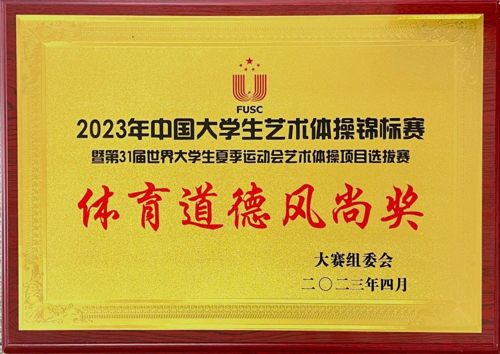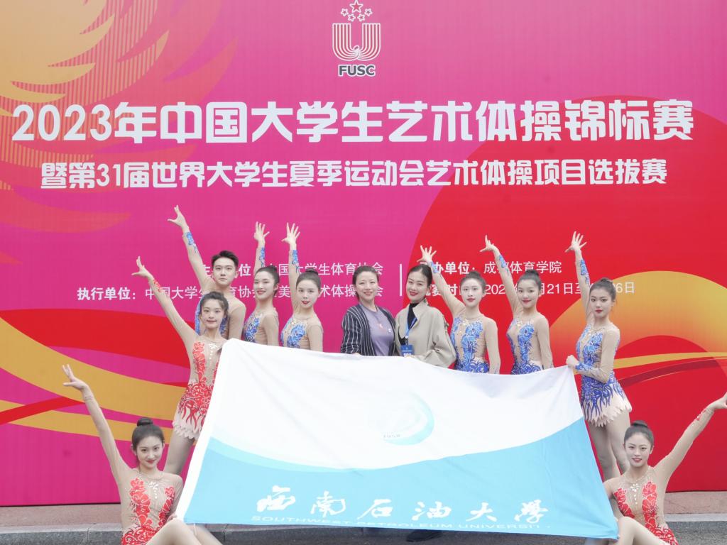 4月21日到26日,2023年中國大學生藝術體操錦標賽暨第31屆世界大學生夏季運動會藝術體操項目選拔賽在成都體育學院舉行。我校藝術體操代表隊參加三個項目,分獲甲組集體項目規定動作繩操第4名、藝術集體操項目第5名、個人單項圈操項目第11名,團隊以排名第三的成績獲體育道德風尚獎。