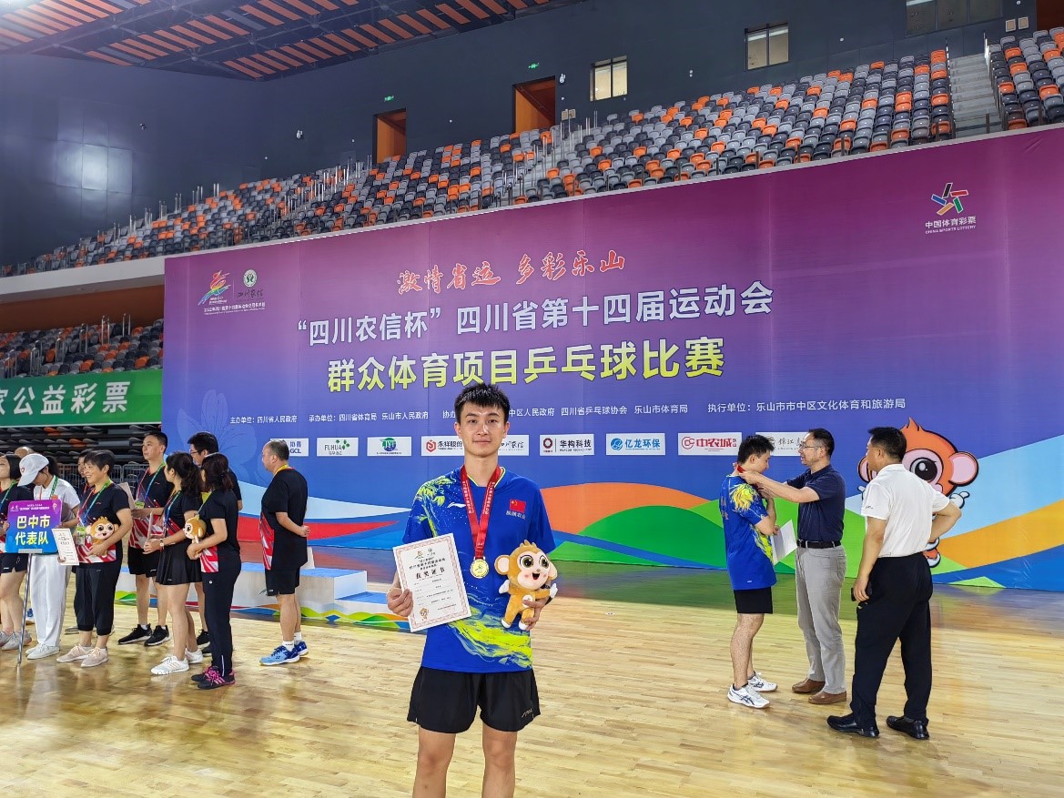 7月13日-17日,四川省第十四屆運動會在樂山舉行,我院教師喬偉卓代表成都市乒乓球隊參賽,獲得群眾組男子單打26-35歲組冠軍和男子團體冠軍,助力成都乒乓隊以8金戰績創造省運會群眾項目歷史最佳戰績。
