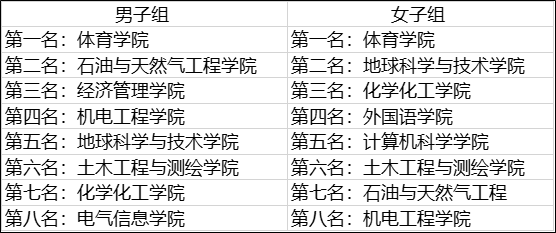 本次有十個院系,共十七支隊伍,約170人參加比賽。此次比賽采用三局兩勝制,每局比賽采用15分制。從9月23日到9月28日,先后經過激烈的小組賽、1/4決賽、半決賽三個階段,最終在9月29日下午13:00迎來了激動人心的冠亞季軍爭奪賽。一聲哨響,體院男排與石工男排、體院女排與地科女排拉開了冠軍爭奪賽的序幕。場外,鼓聲不停、吶喊聲不斷,排球愛好者們相聚為運動員們加油。在烈日下,那一次次的發球、傳球、扣球,他們斗志昂揚,可比分卻十分焦灼,然他們臉上不顯疲態,依舊抱著必勝之決心。最終,體育學院分別奪得男子排球與女子排球的冠軍,外國語學院獲得本次比賽體育道德風尚獎,這也是本次比賽首次頒發此榮譽。