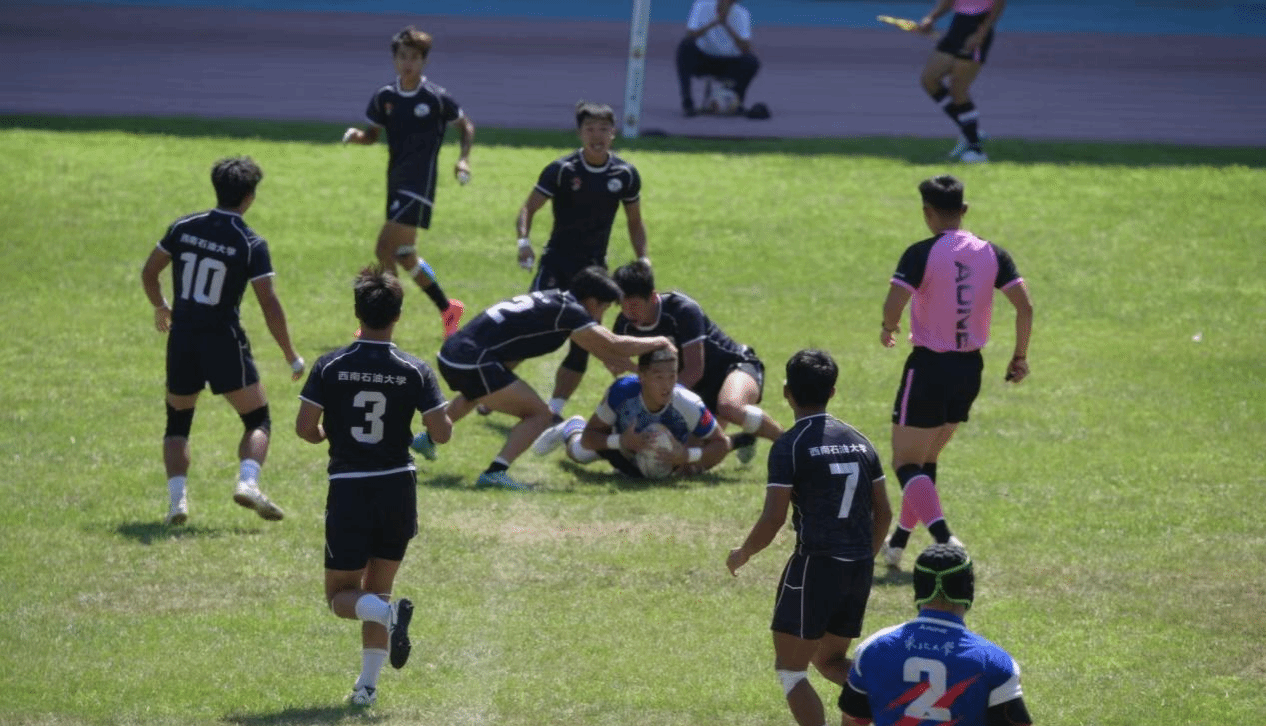 西南石油大學(xué)橄欖球隊(duì)在比賽中一路過(guò)關(guān)斬將,憑借出色的發(fā)揮以小組賽第一的名次進(jìn)入半決賽并成功突圍,挺進(jìn)決賽。在決賽關(guān)鍵時(shí)刻,高溫暴曬也未能削弱對(duì)抗的激烈與速度的沖擊,每一次撲摟、每一次達(dá)陣,都在詮釋英式七人制“短、平、快”的極致魅力。更展現(xiàn)出了我校代表隊(duì)非凡的團(tuán)隊(duì)協(xié)作能力和個(gè)人精湛技藝,面對(duì)強(qiáng)勁的對(duì)手,毫不畏懼,以堅(jiān)定的信念和默契的配合,最終斬獲了男子丙組(高水平組)亞軍的佳績(jī)。