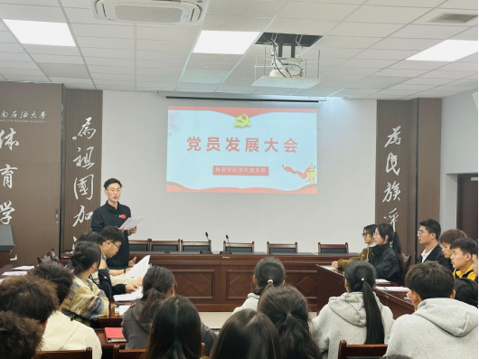 10月30日晚,體育學(xué)院學(xué)生黨支部在體育館113會議室召開2024年秋季預(yù)備黨員發(fā)展大會,討論第278期發(fā)展對象轉(zhuǎn)為中共預(yù)備黨員事宜。體育學(xué)院黨委書記向劍鋒,黨委副書記、紀(jì)委書記溫登峰,副院長劉小平出席,支部書記汪佳材主持。