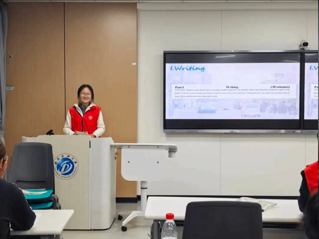 交流會分為政策解讀、經驗分享與互動答疑三個環節。葉星語結合最新考試大綱,詳細解析四六級在聽力、閱讀等模塊的題型變化與能力要求,強調基礎積累與綜合應用并重。隨后,體育教育2024級徐榕鴻、游悅等高分通過四六級的優秀同學分享詞匯記憶、寫作提分及時間管理等實用策略,并鼓勵同學們保持良好心態,科學規劃復習。