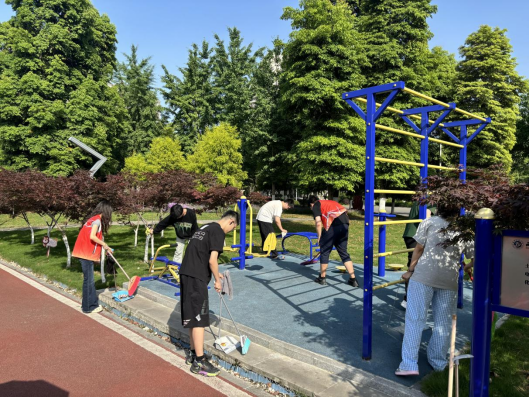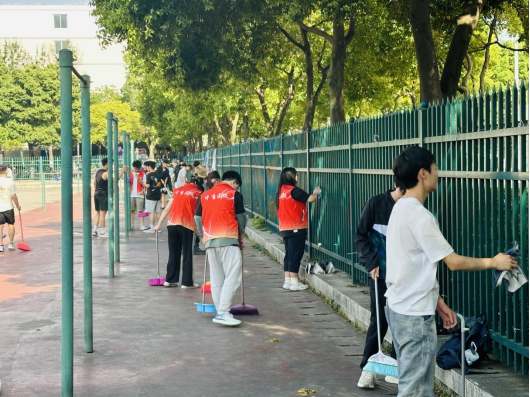 活動(dòng)依托體育學(xué)院“體+勞”融合共育勞動(dòng)實(shí)踐基地和“運(yùn)動(dòng)先鋒”黨員志愿服務(wù)站開展,輔導(dǎo)員汪佳材帶隊(duì)并示范。學(xué)生分為5個(gè)大組,前往體育館、兩個(gè)田徑場(chǎng)、夢(mèng)溪步道、籃球場(chǎng)、排球場(chǎng)等場(chǎng)地,開展衛(wèi)生清潔和設(shè)施檢查。雖然天氣炎熱,但同學(xué)們狀態(tài)良好,清掃路面雜物、擦洗器材浮塵,清潔煥新;安全巡檢,敲擊測(cè)試、實(shí)地體驗(yàn),排查安全隱患。同學(xué)們以勞動(dòng)為筆,為田徑場(chǎng)跑道、球網(wǎng)支架、健身器材等 ,梳妝美顏",用汗水詮釋著“勞動(dòng)賦能成長(zhǎng),奮斗成就未來(lái)”。