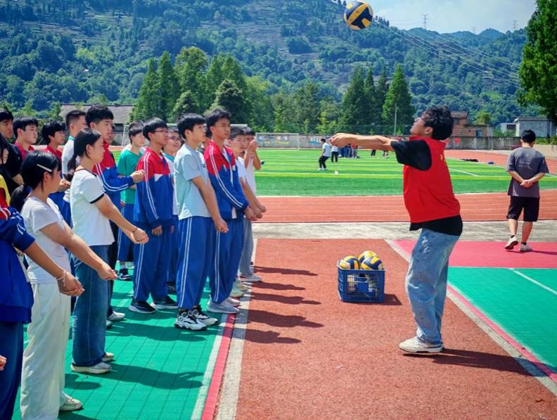 6月11-29日,體育學院雨城躍動燃夢實踐隊走進雅安市名山區車嶺鎮初級中學,開展了融合排球、足球教學與茶文化講解的實踐活動。