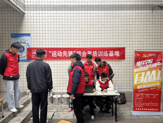11月14日中午,體育學院在弘毅居開展“運動先鋒”BMI體脂健康測試活動,為學生提供免費體脂檢測服務。