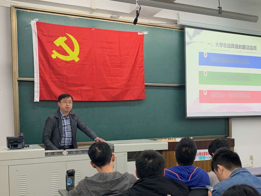 活動(dòng)第二環(huán)節(jié),學(xué)院黨委副書記、紀(jì)委書記于百江旁征博引、深入淺出得對“廉潔”二字進(jìn)行解讀,引用《孫子兵法》對將帥的五德標(biāo)準(zhǔn),對照《干部任用條例》五項(xiàng)規(guī)定,提出了優(yōu)秀學(xué)生的定位標(biāo)準(zhǔn)。于書記以案例的形式犀利地指出了當(dāng)今大學(xué)生學(xué)習(xí)生活中出現(xiàn)的“考試舞弊、作業(yè)抄襲”等不廉潔現(xiàn)象,并告誡同學(xué)們“應(yīng)主動(dòng)拒絕校園不廉潔行為,自問自省堅(jiān)守學(xué)生干部初心”。