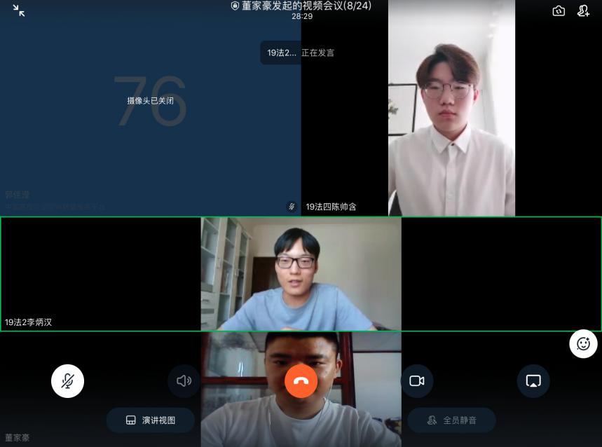 在經過自愿報名的程序后,面試工作于4月29日和30日通過視頻會議形式如期開展,分別進行了站長團和綜合辦公室、思想政治部、學習宣傳部、實踐服務部四個下設部門正副部長的面試。工作站指導老師平凱、法學院學生黨建中心主任汪佳材和黨員工作站的站長團成員們擔任本次面試工作的面試官。在面試中,各黨員、預備黨員與入黨積極分子積極參與,展現自我,充分表達了同學們對于建設黨員工作站的飽滿熱情和動力。