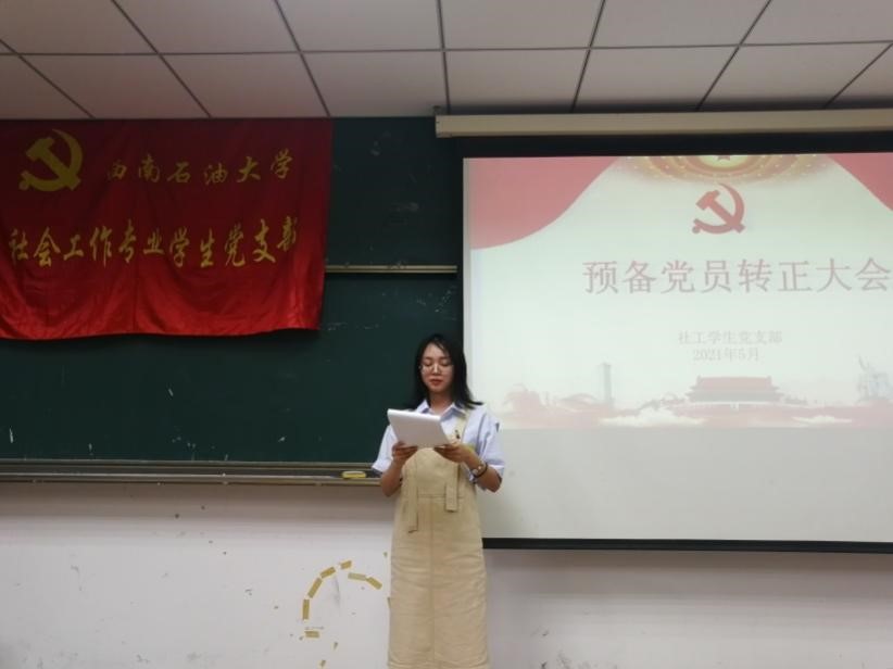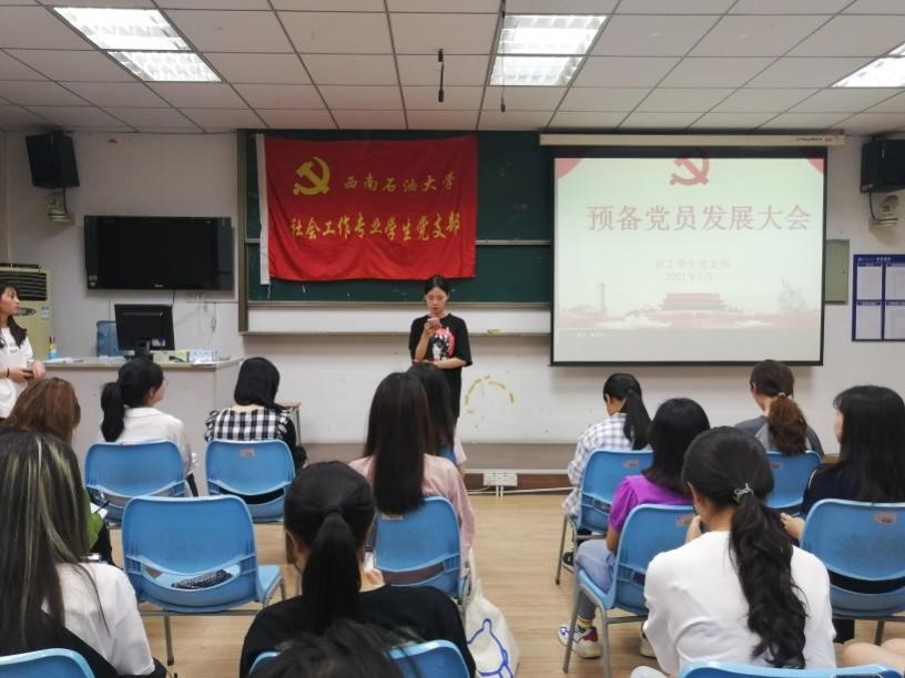激揚青春跟黨走,奮進共創新時代!為積極響應上級黨組織號召,按時有序開展新學期黨員發展工作,吸納優秀學生加入黨組織,擴大黨支部的人才儲備,更好發揮黨支部的戰斗堡壘作用,法學院社會工作專業本科生黨支部于2021年5月22日19:00在博學樓A406召開“2021年春季學期社工黨支部黨員發展、轉正大會。”大會討論了關于接收劉晨杰、康雅鈞、夏運美、陳霞、杜舒舒、向思與六位同志為中共黨員,田夢宇、饒渝楠、尚夢杰、鄔依停、李俊杰等13位同志為中共預備黨員的問題。本次會議由馬禮平同志主持,支部全體正式黨員、預備黨員共計19人參加。