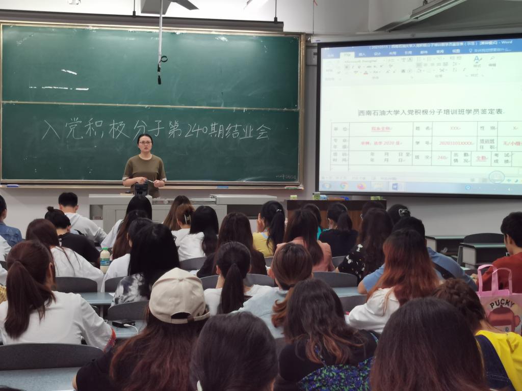 2021年5月15日20:30,西南石油大學法學院第240期入黨積極分子培訓班第1組結業會在博學樓A501舉行。本次結業會,由楊可瀚老師主持。