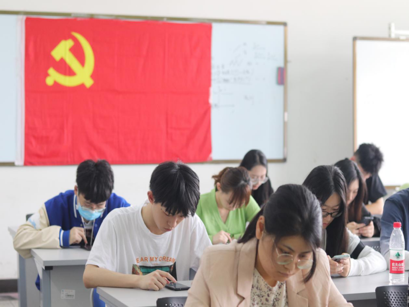 受場地限制,各黨支部組織部分成員于教室參與統一線下答題,無法到場的同學們也在各自寢室或者利用課間休息時間進行線上答題。活動開始后,各黨支部同學進入界面進行答題,細細斟酌后進行答案選擇。競答題目緊緊圍繞我黨的發展歷史展開,簡短的題目涵蓋多個方面,幫助同學們在答題中進一步認識到歷史發展潮流、歷史發展經驗以及歷史的發展規律。