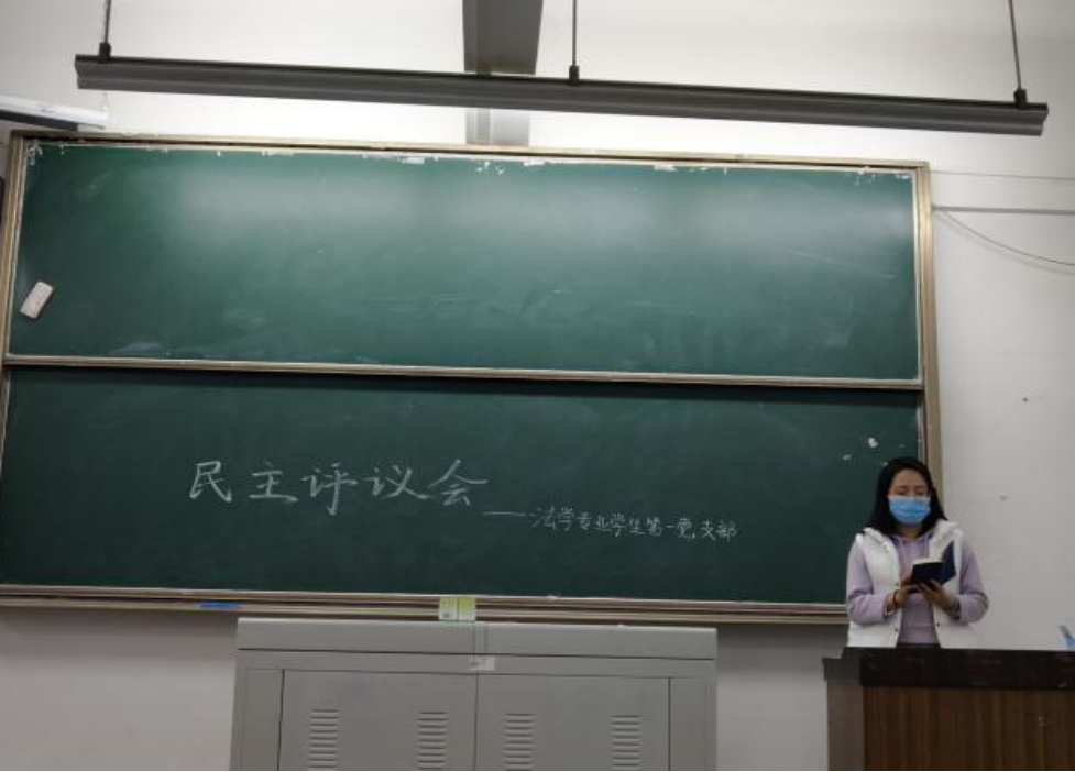 為鞏固深化“不忘初心、牢記使命”主題教育成果,提高基層黨組織政治功能和組織力,全面抓好、夯實黨支部建設,根據上級黨委的安排部署,法學院法學專業學生第一黨支部于3月10日晚18時30分在博學樓A502召開了組織生活會暨黨員民主評議會。本次會議由法學院法學專業學生第一黨支部書記楊可瀚老師和實習支委何龍同志主持,黨支部全體同志積極參加會議。