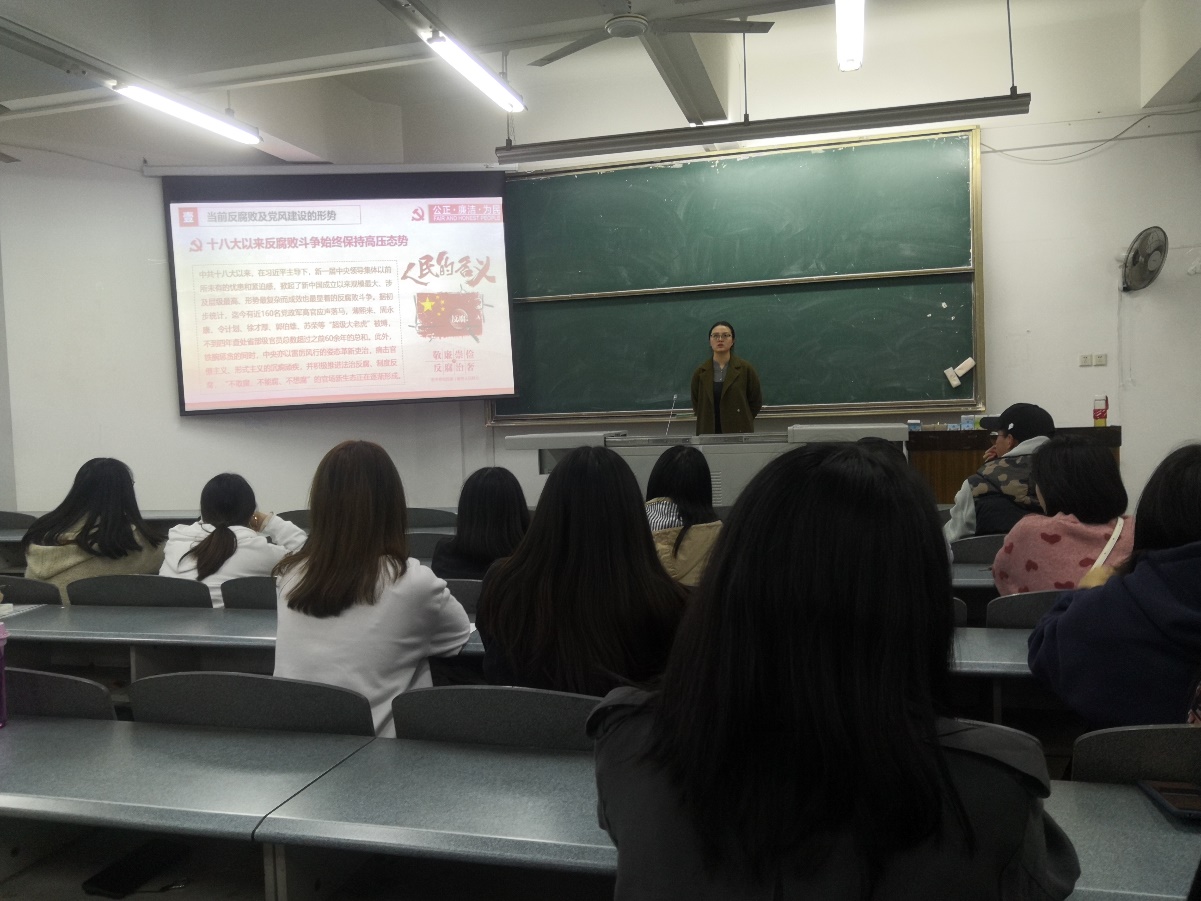 中共十八大以來,在習近平總書記的主導下,黨中央掀起了新中國成立以來規模最大、涉及層級最高、形勢最復雜而成效最顯著的反腐斗爭,反腐敗斗爭工作始終保持高壓態勢。為不斷增強黨性觀念和廉潔從政意識,切實提高拒腐防變能力,法學院法學專業學生第一黨支部開展了“廉潔微黨課,廉潔引風尚”主題黨組織生活會議。本次會議于10月28日19時在博學樓B502教室開展,由法學院法學專業學生第一黨支部書記楊可瀚老師主持,黨支部全體黨員同志積極參與。
