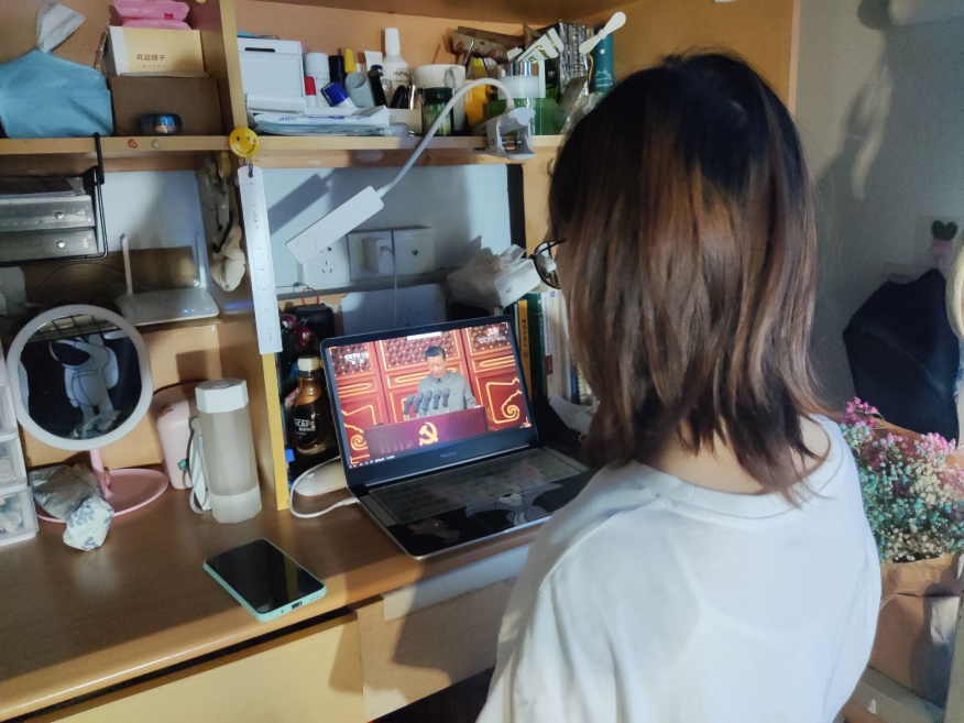 在直播期間,大家全神貫注,認真聆聽學習習近平總書記作的重要講話。習近平總書記的重要講話全面回顧了中國共產黨成立百年來為實現中華民族偉大復興所付出的不懈努力、所取得的偉大成就,系統總結了我們黨帶領全國各族人民在百年實踐中取得的“九個必須”的歷史經驗,令人備受鼓舞、倍感振奮。對于青年一代,習近平總書記在講話中提到說:“新時代的中國青年要以實現中華民族偉大復興為己任,增強做中國人的志氣、骨氣、底氣,不負時代,不負韶華,不負黨和人民的殷切期望!” 習近平總書記的一字一句擲地有聲,讓同學們倍感振奮。大家紛紛在群里分享自己的感想,表達對黨的感謝與美好祝愿。20級積極分子鄭玉蓮說道:“何其有幸,生于華夏。見證百年,愿山河無恙,祖國繁榮昌盛祝福祖國繁榮昌盛。祝親愛的黨,生日快樂!”18級黨員趙嘉晨感慨道:“祝愿我們黨和國家越來越好!我們要用我們的激情和熱血報答我們祖國!”大家用最誠懇的語言訴說著對黨最真切的愛,祝愿我們偉大的祖國繁榮昌盛!