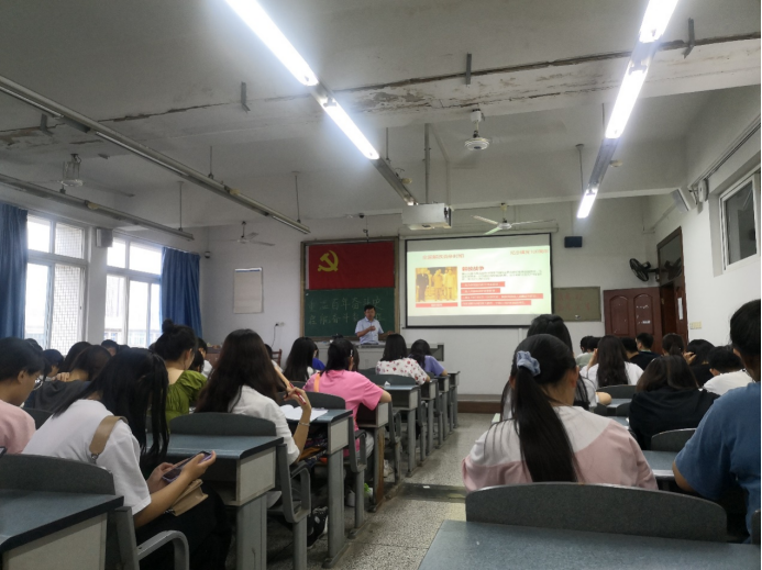 2021年6月10日晚,院黨委副書記、紀(jì)委書記于百江為同學(xué)講授“重溫百年奮斗史,啟航時(shí)代新征程”黨史學(xué)習(xí)教育專題黨課,講座在博學(xué)樓A504舉行,法學(xué)院近百名學(xué)生黨員、入黨積極分子參加會(huì)議。
