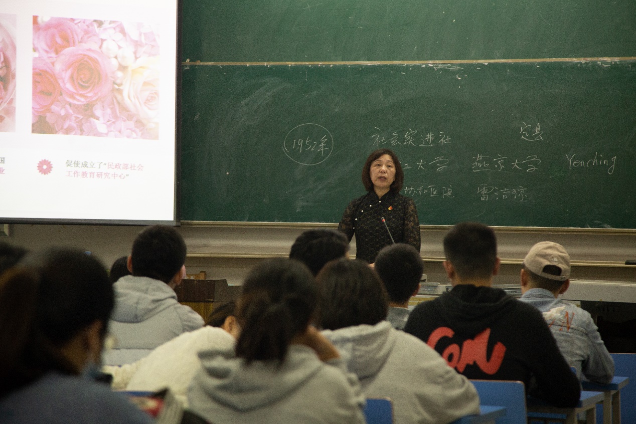 中國社會工作恢復重建的資源基礎主要來自于民國時期的傳統資源和中國行政性的社會工作經驗。譚老師從最初中國社會工作的起點——1912年北京社會實進社的建立講述到1952年院系大調整,使得中國社會工作暫時性中斷。在講解中,譚老師提到中國共產黨對社會工作的扶持與發展,以及中國政府在中國共產黨領導下大力發展社會福利事業,為人民服務。從中可以明白早期社會工作的命運與中華人民共和國史的發展是相互聯結、相互印證的。